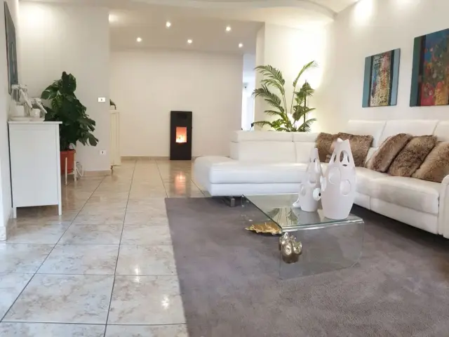 Al primo piano si sviluppa un appartamento di ampie dimensioni, composto da ingresso su grande e luminoso soggiorno, cucina abitabile, tre camere da letto di ampia metratura, studio e bagno.