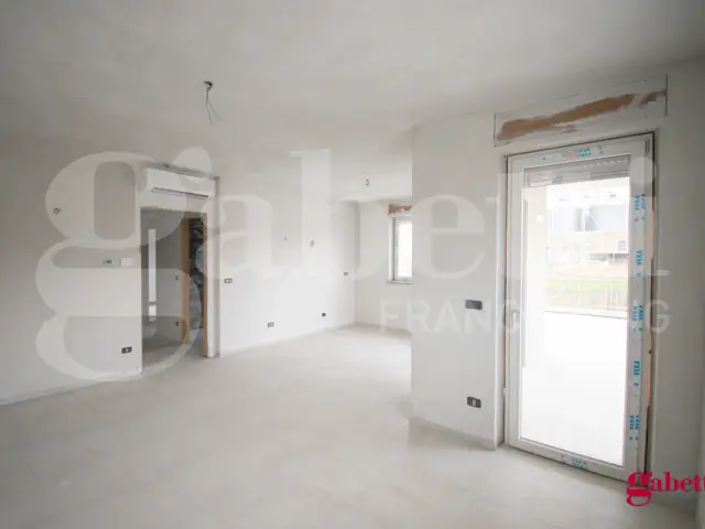 Situato al piano terra di un complesso residenziale signorile in costruzione, l'appartamento si compone con ingresso su zona giorno open - space, disimpegno, due camere da letto, due bagni, ripostiglio e l'area esterna esclusiva, ad uso giardino, portico e lastrico solare.