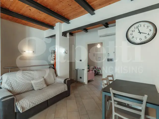 Al primo piano a cui arrivi tramite una caratteristica scala in pietra, ti accoglie una zona giorno luminosa e moderna, dove il soggiorno con angolo cottura diventa il cuore pulsante della casa: perfetto per cene improvvisate, risate tra amici o semplicemente per godersi un momento di quiete dopo una giornata intensa. Le travi a vista aggiungono carattere e calore, mentre la luce naturale scivola delicata dai balconi, rendendo ogni angolo vivo.